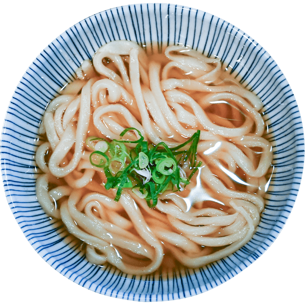 北海道産昆布と熊本県牛深産のサバやうるめを使用した天然出汁は温かいうどんと相性抜群! 熱いうどんの基本となる一杯です。