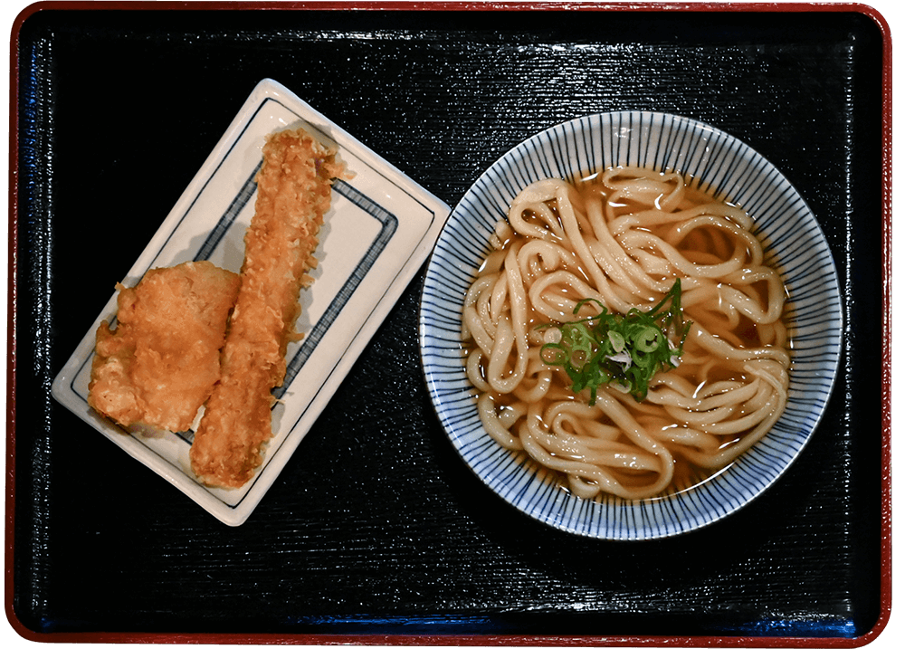 そのまま出汁を麺にぶっかけて食す豪快な一品。 うどん本来の繊細さを味わってください。